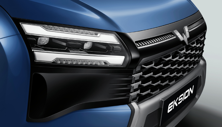 Desain Wuling Eksion mengusung konsep Muscular Flowline yang menampilkan kesan kuat, modern, dan berkelas. Tampilan eksterior diperkuat dengan X-shaped lights, alloy wheels berukuran 18 inci, floating roof, dan detail desain yang mencerminkan karakter SUV yang percaya diri sekaligus selaras dengan nilai kebersamaan keluarga.